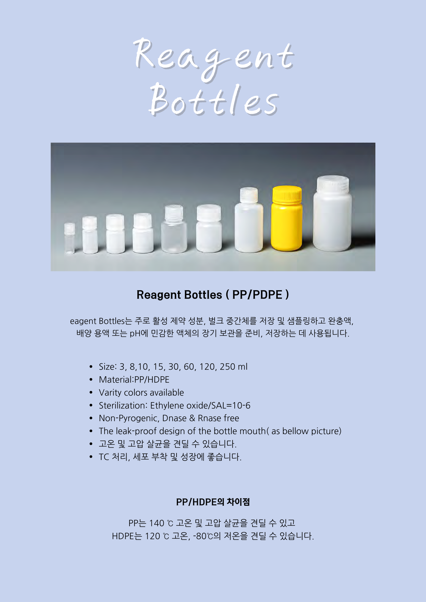 Reagent Bottles are mainly used for storing and sampling active pharmaceutical ingredients, bulk intermediates,and also for preparing, storing buffers, culture solutions or long-term storage of pH sensitive liquids. It can be used to store reagents but cannot be used as heating vessels.
