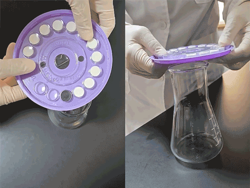 BCodeGen™ Agarose Tablet은 회전식 프레임을 사용하여 살짝 회전만 해주면 Tablet이 바로 나옵니다.